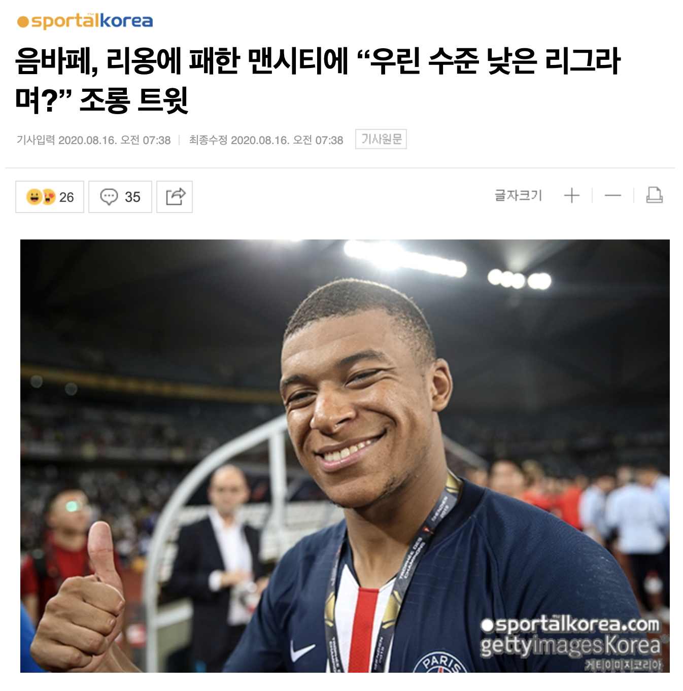 경기 직후 파리생제르맹(PSG) 소속의 음바페는 자신의 트위터에 “FARMERS LEAGUE”라는 단어와 함께 어릿광대 얼굴의 이모지를 덧붙여 놓았다. 박수를 치는 이모지도 함께 올렸다.