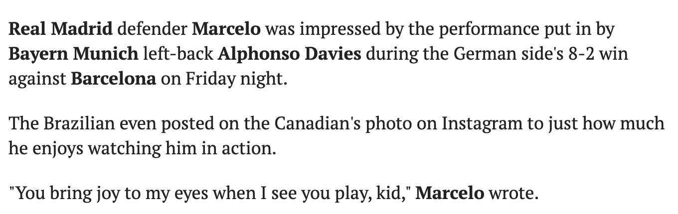 | 알폰소의 플레이를 보고 직접 댓글단 마르셀로 | |
