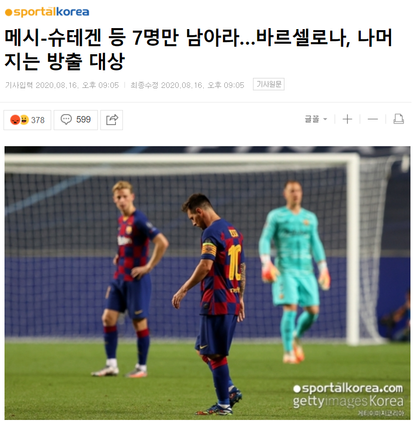 스페인 매체 '스포르트'는 "바르셀로나가 유럽축구연맹(UEFA) 챔피언스리그에서 당한 불명예로 거의 모든 선수를 이적 시장 매물로 내놓을 것"이라며 "전반적으로 고액 연봉자를 줄여 라우타로 마르티네스(인터밀란), 에릭 가르시아(맨체스터 시티)와 계약에 몰두할 것"이라고 변화 핵심을 설명했다.