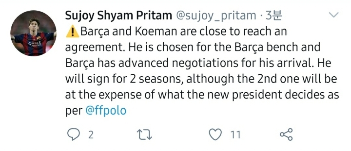 바르셀로나와 쿠만은 합의 도달에 근접했다. 그는 다음 시즌 바르셀로나 감독으로 선택되었고 바르셀로나는 진전된 협상을 했다. 그는 2년 계약을 할 것이지만 2번째 시즌에도 감독을 맡을지 여부는 신임 회장이 결정할 것이다.