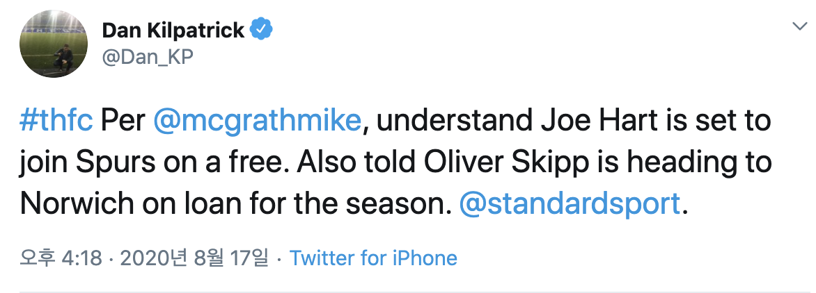 [[댄 킬패트릭] 조 하트-토트넘 이적 예정]