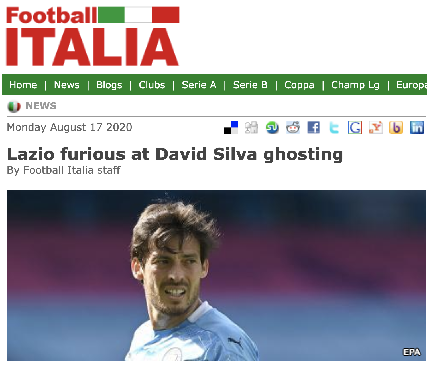 출처 : https://www.football-italia.net/157328/lazio-furious-david-silva-ghosting