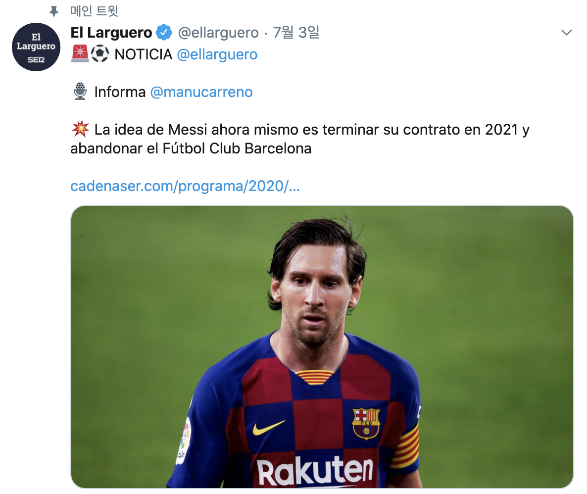| 메시는 2021년 떠나려 하고, 쿠만은 대형 선수들을 정리할 것이다 [El Larguero] | |
