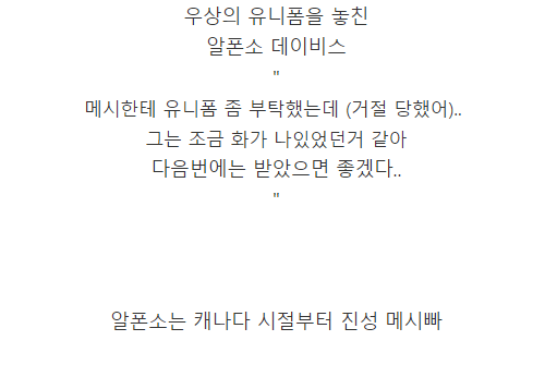 알폰소 "우상 메시한테 유니폼 교환 거절당했다"