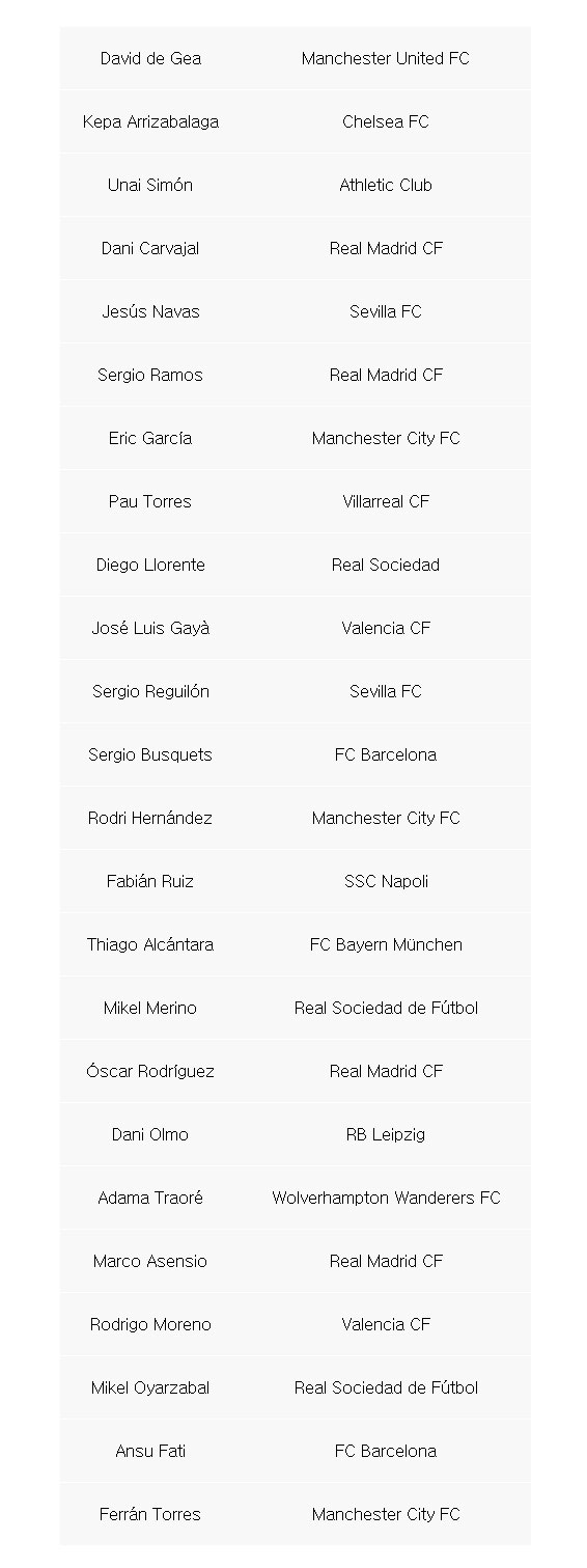 [9월 A매치 참가하는 '스페인 국대 명단']