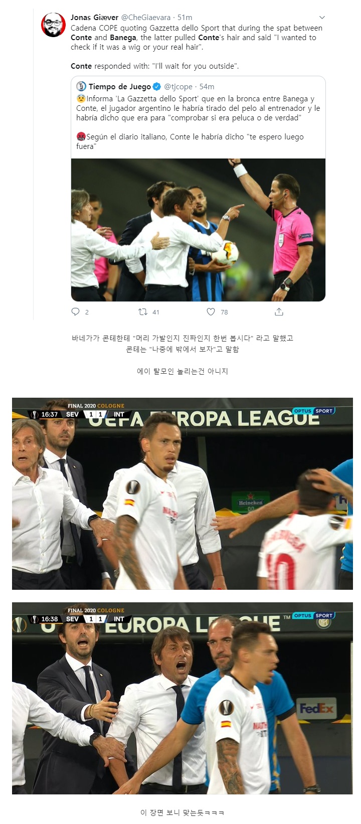 경기 중 '콘테의 가발'을 공격한 바네가