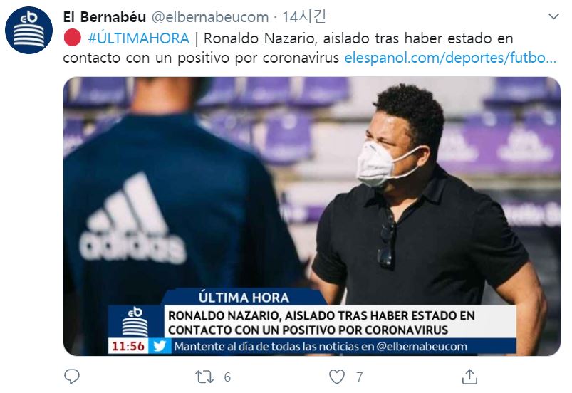 | 호나우두, 코로나 양성반응으로 격리조치 | |