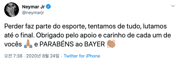 출처 : https://twitter.com/neymarjr/status/1297664505045028865