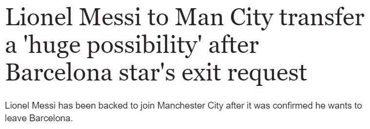 한편 스카이스포츠 기자는 시티가 메시를 감당할 수 있는 두 개의 영국 클럽 중 하나라고 말했다.