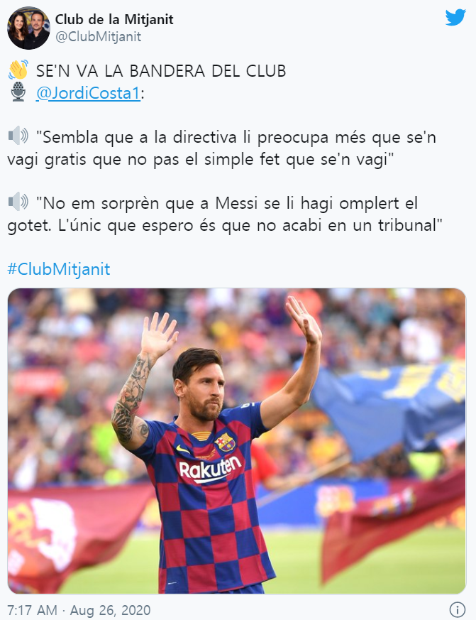 (그동안 상황을 보면) 메시가 팀을 떠나기로 결정한 건 사실 놀라운 일이 아닙니다. 나는 메시가 법적 공방에 휘말리지 않기를 바랄 뿐입니다..