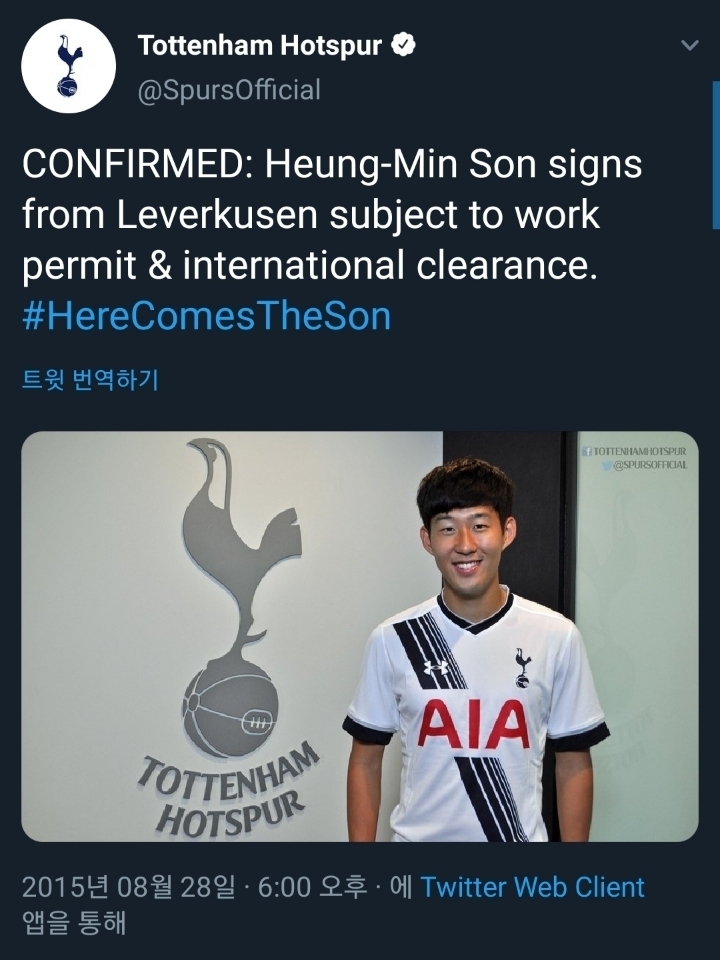 2015년 8월 28일, 23세 손흥민이 토트넘 유팀폼을 입은 첫 날!