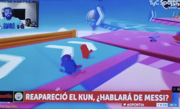 폴 가이즈 방송하는데 TYC스포츠 체널에서 아구에로 트위치 게임 라이브 동안에 '메시' 언급 계속함
