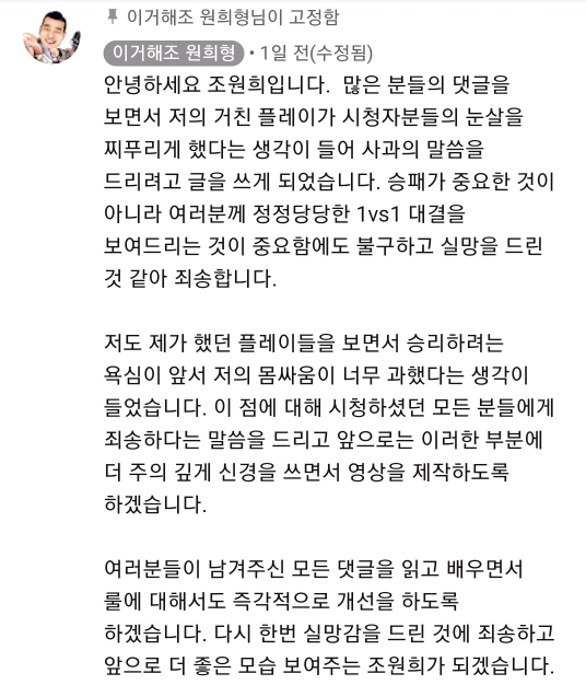['거친 파울 논란' 결국 사과문 올린 조원희]