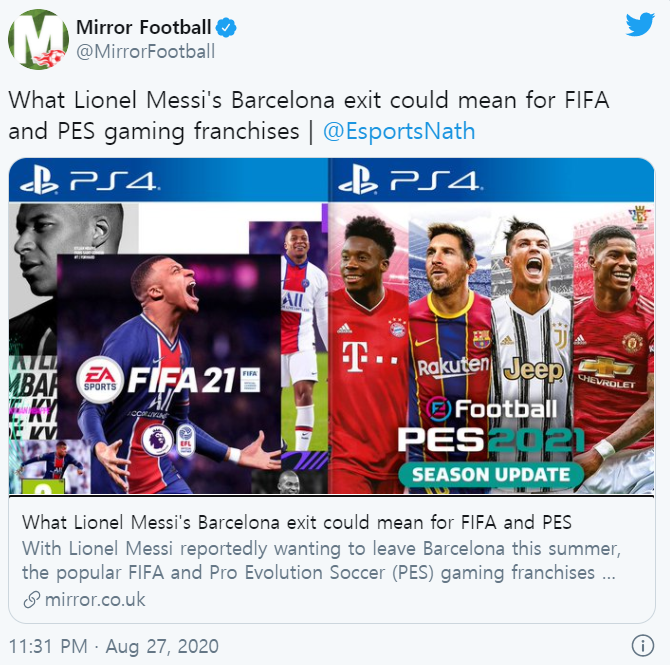 [메시의 이적이 축구 게임 '피파, PES'에 미칠 영향]