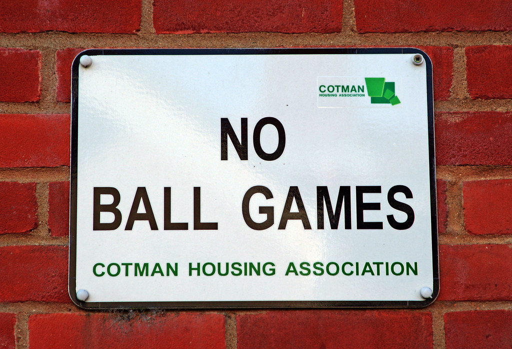 추가로 런던뿐만 아니라 영국 전역에 퍼져 있는 표지판인 ‘NO BALL GAMES (공놀이 금지)’ 문구가 크게 새겨져 있습니다. 산초는 이 표지판을 항상 무시했다고 합니다.