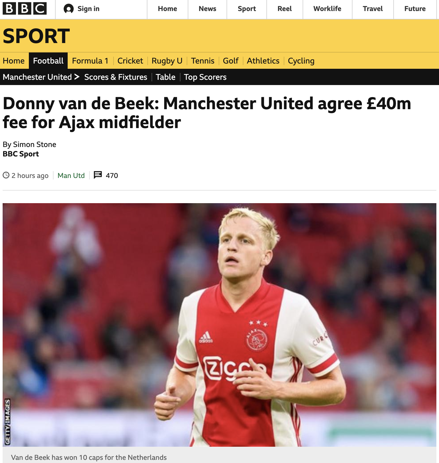[[BBC] 반 더 비크, 맨체스터 유나이티드 행]