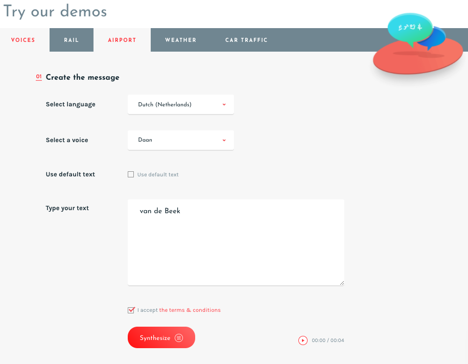 2. select a voice 메뉴를 통해 발음을 듣고 싶은 성우의 성별과 이름 선택