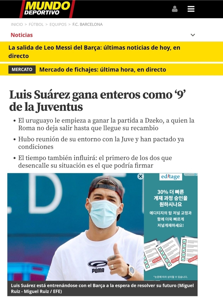 유벤투스의 새로운 9번으로 유력한 수아레스 (or 에딘 제코)