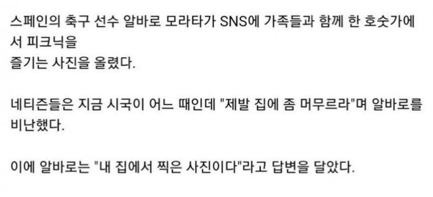 ['이 시국에 피크닉' 네티즌에게 비난 받은 모라타의 해명]