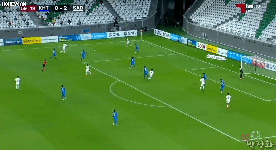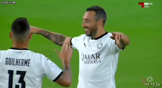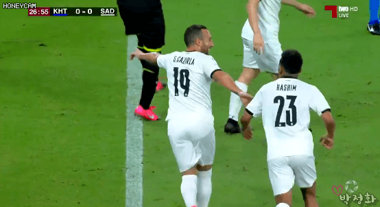 함께 기뻐하는 팀 동료 정우영과 남태희