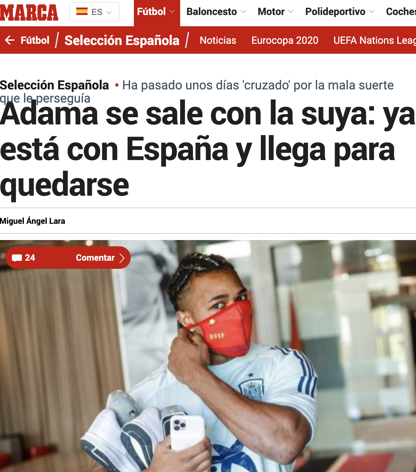 [코로나 양성인 '아다마 트라오레'가 스페인 국대에 다시 승선한 이유.txt]