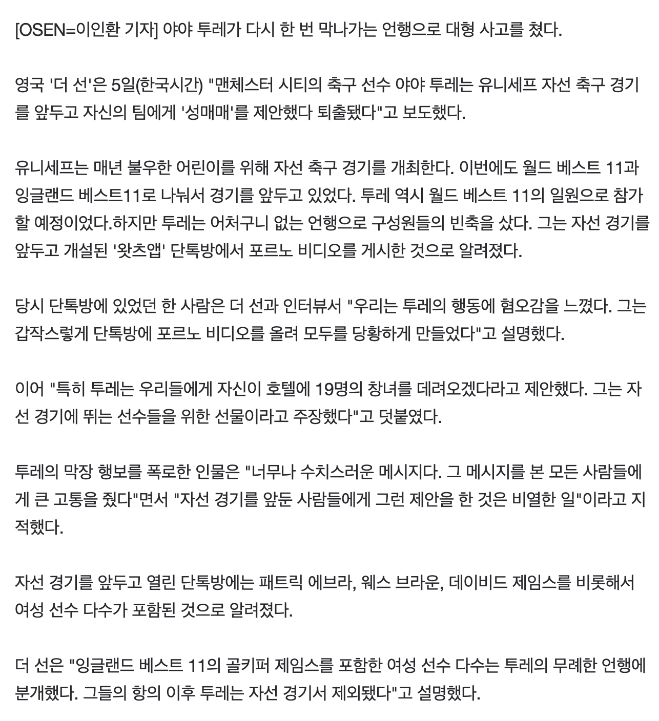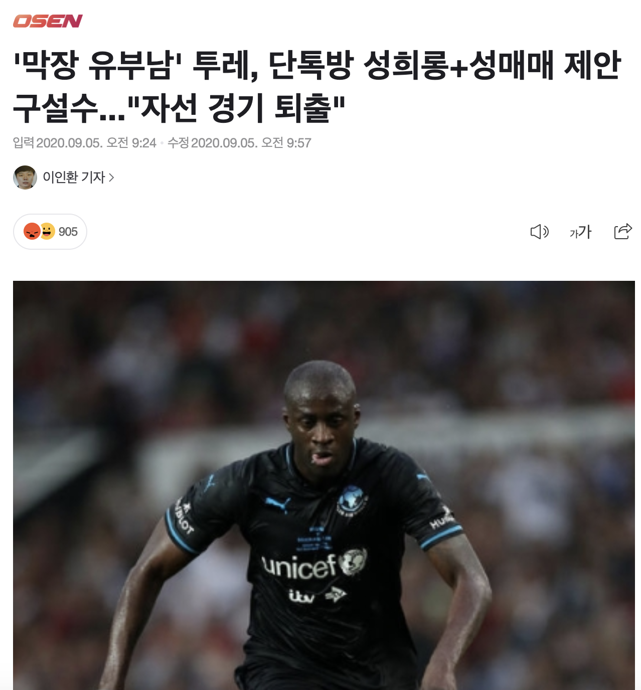 [야야 투레, 자선 경기 단톡방에 성매매 제안ㄷㄷ]