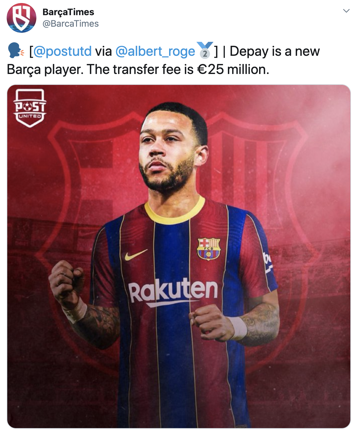 데파이는 새로운 바르셀로나 선수. 이적료 25m 유로 [알베르트 로제]