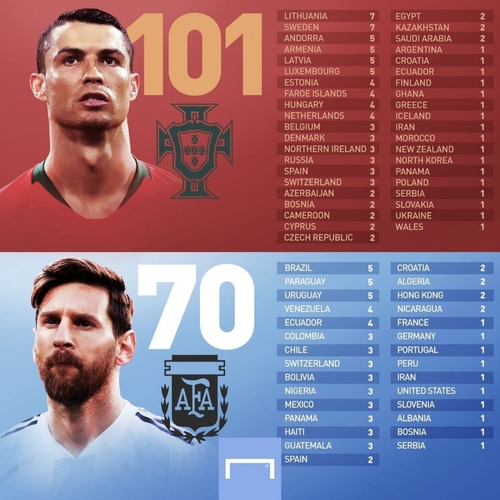 [메시&호날두 국가대항전 상대국가별 득점 기록ㄷㄷ.jpg]