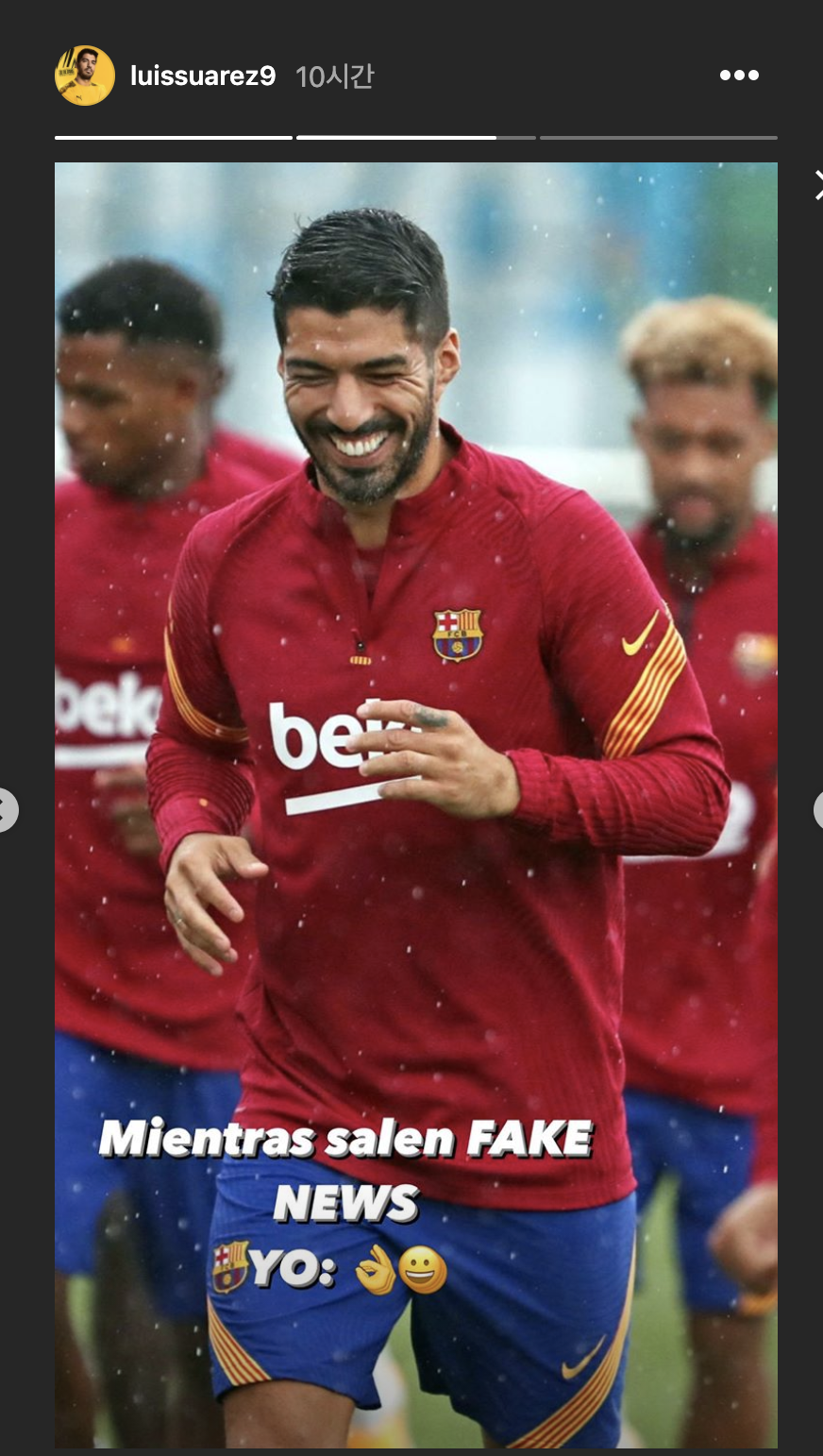 수아레스 본인 인스타그램에 바르셀로나에서 웃으며 훈련하는 사진을 올리며 이탈리아 언론에서 나오고 있는 유벤투스 계약은 페이크뉴스라는 문구와 함께 사진을 올렸네요...!!!