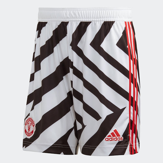 3rd 유니폼의 디자인은 굉장히 과감합니다. 화이트 유니폼에 블랙 'Dazzle camo' 패턴이 새겨져 있습니다. 그 위에 맨유 엠블럼과 아디다스 로고가 레드 컬러로 적용되었습니다. 참고로 Dazzle camo 패턴은 1차 세계 대전에서 처음 사용됐습니다. 물체의 거리, 속도, 이동 방향 등을 추적하지 못하도록 고안한 패턴입니다.