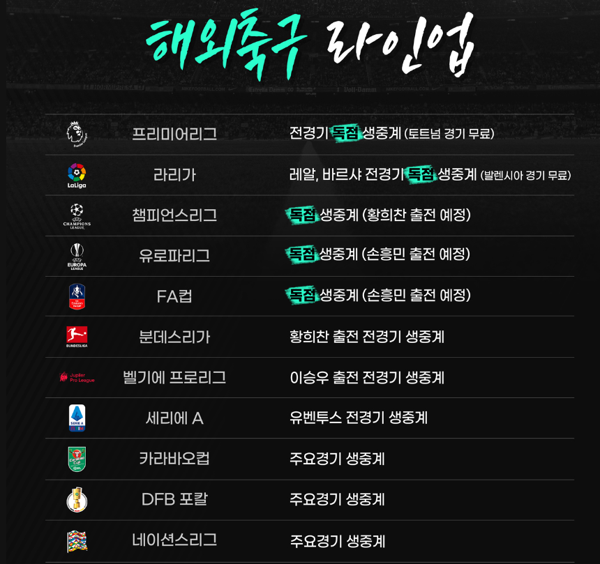 [[오피셜]20/21시즌 스포티비 해외축구리그 독점생중계 라인업]