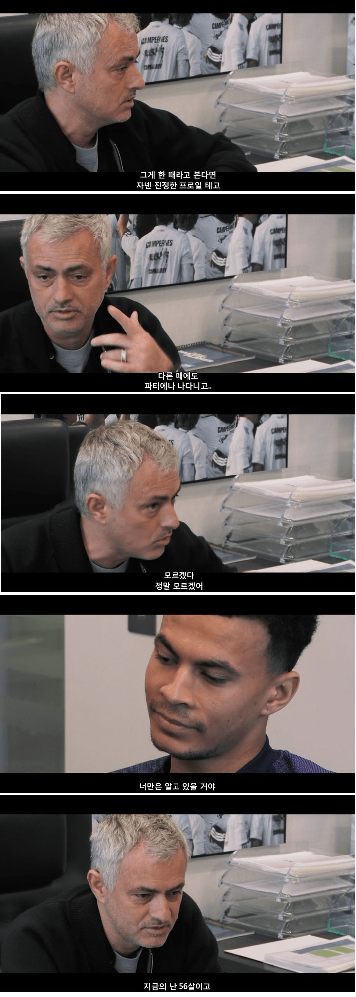 진지하게 진심으로 델레 알리를 위한 마음을 전달한 무리뉴네요. 다큐에서는 이 면담 다음 경기에서 알리가 맹활약을 하는 걸로 나옵니다