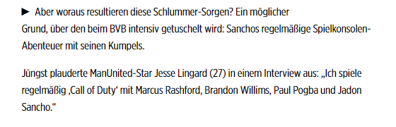 그러나 이러한 수면 문제는 무엇에서 비롯되었을까? 그가 고백한 한가지 이유는 산초는 그의 친구들과 함께하는 게임때문이다. 맨체스터 유나이티드의 스타 제시 린가드는 최근 인터뷰에서 "나는 레쉬포드, 브랜든 윌리엄스, 폴 포그바, 제이든 산초와 자주 콜 오브 듀티를 한다."
