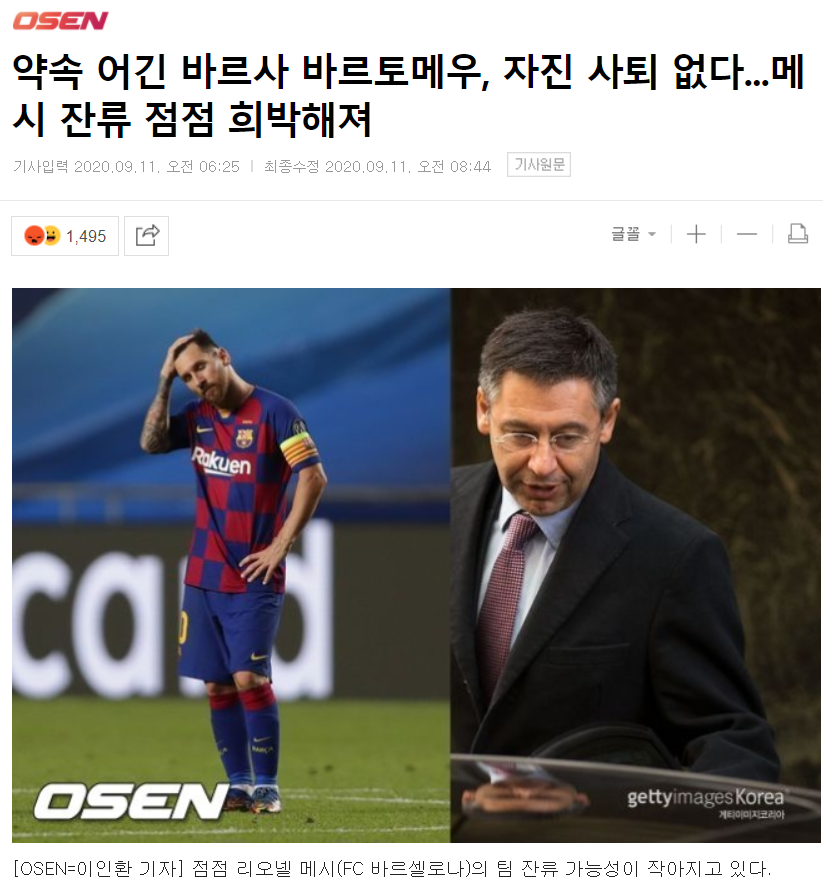 | 메시 잔류하자 '약속 어기고 말 바꾼 바르토메우' | |