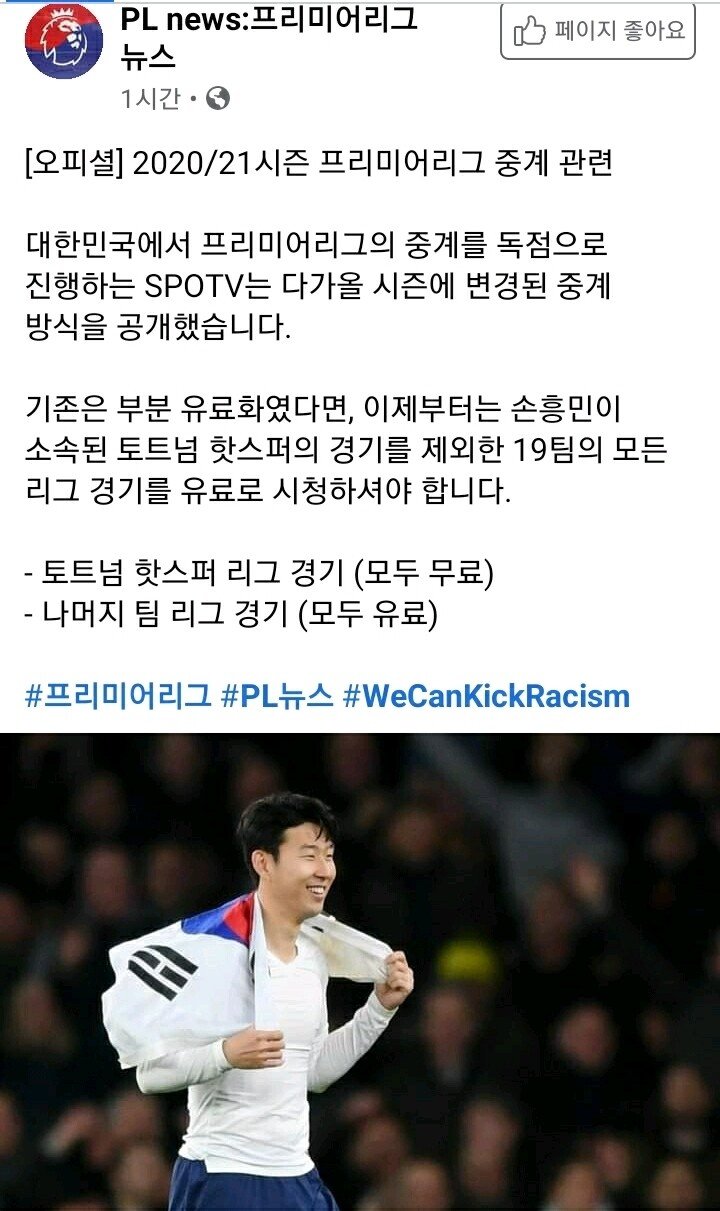 SPOTV, '토트넘만 제외' 모든 프리미어리그 경기를 유료로 중계한다'