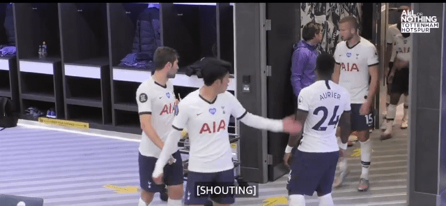 손흥민이 라커룸으로 들어오면서 불만을 말함
