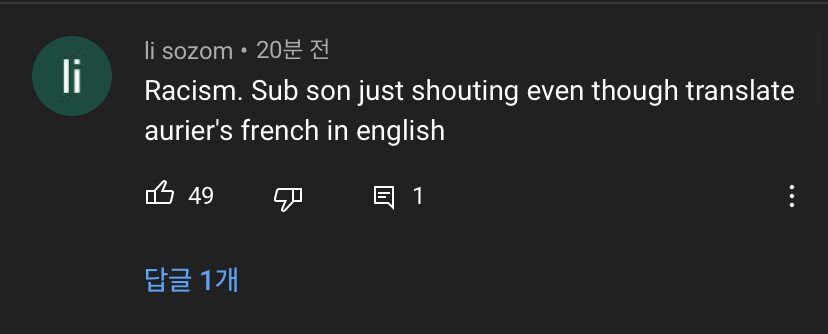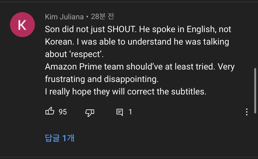 아래는 샤우팅 자막에 관한 의견들.. 심하게는 인종차별까지 언급되는 중 (영상은 맨 아래에 있습니다)