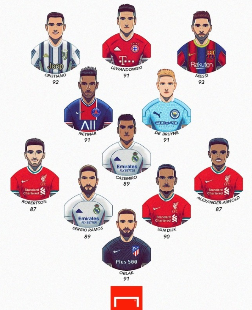 ['피파 21 기준' 현역 축구 선수 능력치 베스트 11]