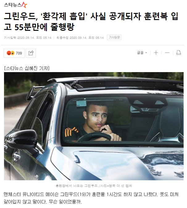[그린우드, 환각제 흡입 사실 공개 후 훈련복 입고 줄행랑]
