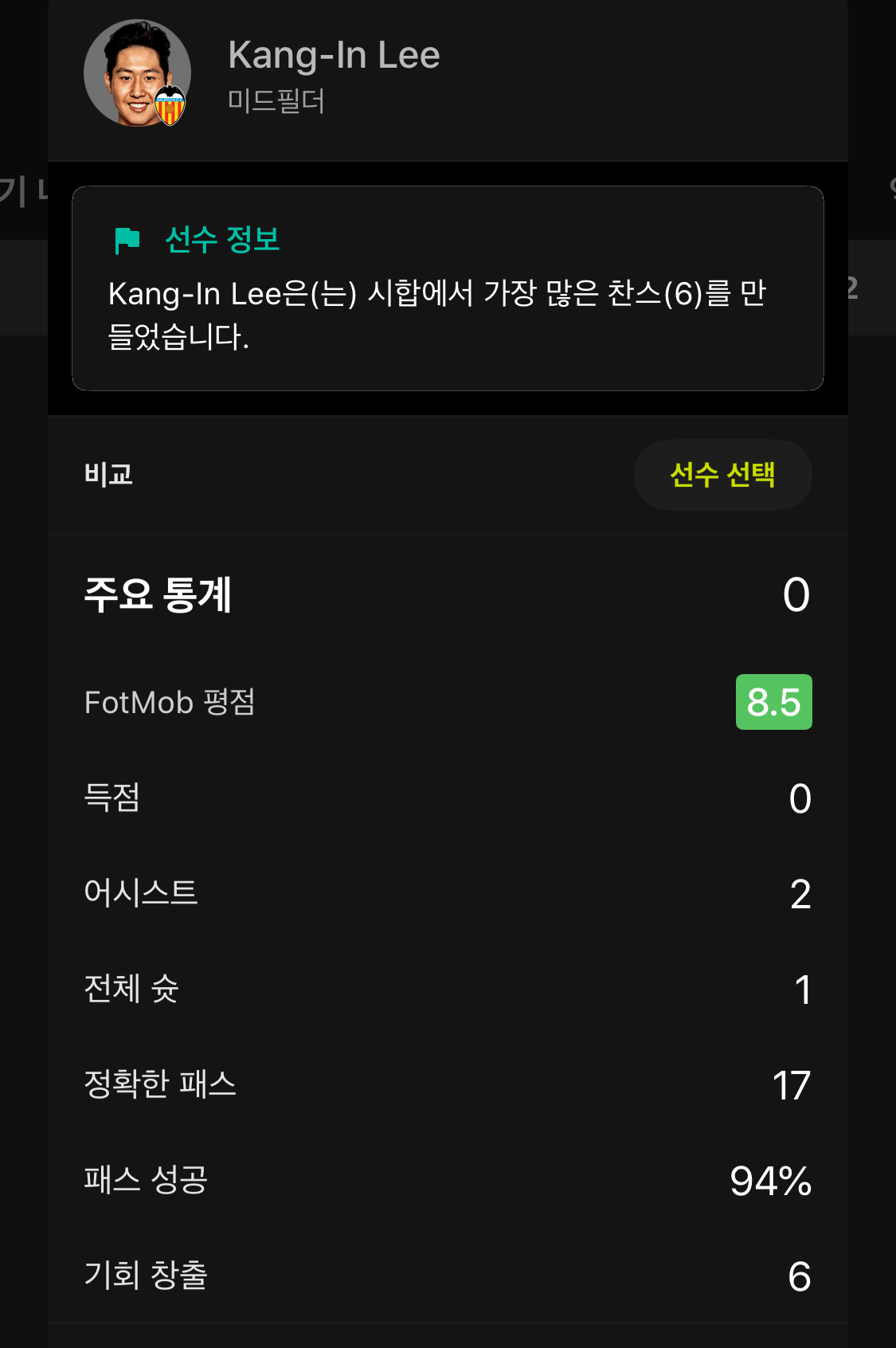새벽 경기에서 기회 창출 6회 만듦ㄷㄷ 갓강인!!!!!!!!!