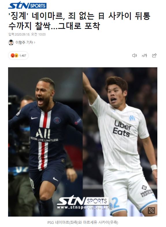 네이마르가 또 다른 인물의 몸에 손을 댄 것이 대중에 공개됐다. 마르세유는 지난 17일 공식 SNS를 통해 PSG전 편집 영상을 공개했다. 이 안에 양 팀이 엉겨붙어 있는 상황에서 네이마르가 죄 없는 사카이의 뒤통수를 찰싹 치는 장면이 포착됐다.