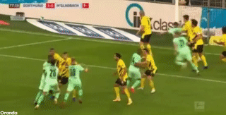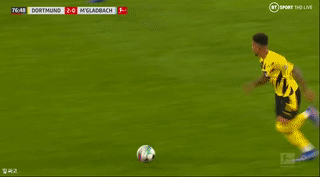 헤더패스를 받자마자 미친듯이 질주하는 산초 그리고 그 산초 옆으로 엄청난 속력으로 따라붙는 홀란드