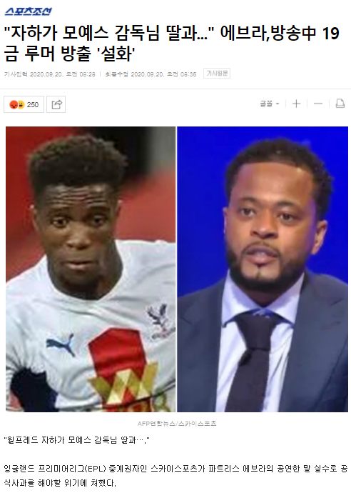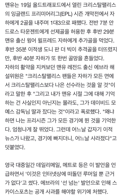 "자하가 맨유에서 못나온 이유는 모예스 딸과 잔 것 같다" 에브라는 루머를 방송에서 말했음ㄷㄷ