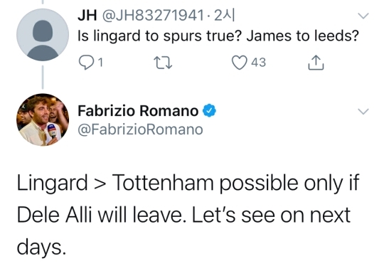 "로마노님! 린가드 to 토트넘 진짠가요??"