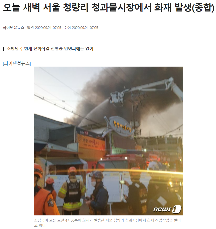 오늘 새벽 청량리 청과시장에 화재가 일어났네요.....