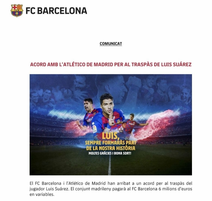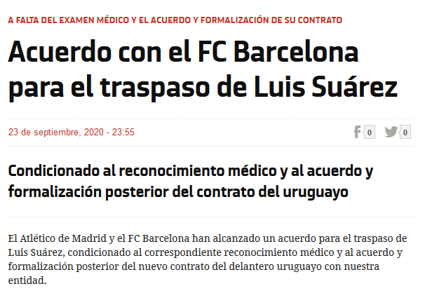 | [오피셜] 바르셀로나, AT와 루이스 수아레즈 이적 합의 | |