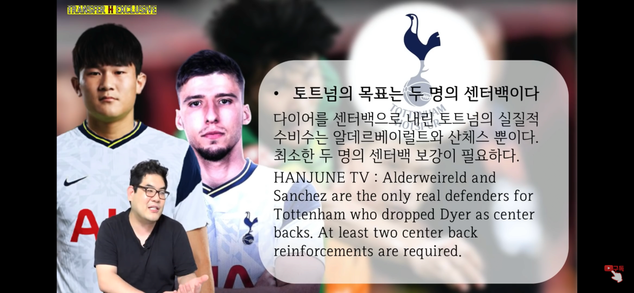 [한준 기자 "토트넘은 김민재 + 유럽 센터백 영입할 예정"]