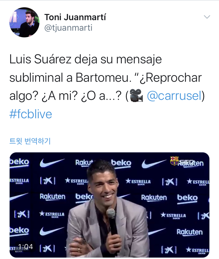 [기자회견에서 은연중에 바르토메우 까는 수아레즈ㅋㅋㅋ]