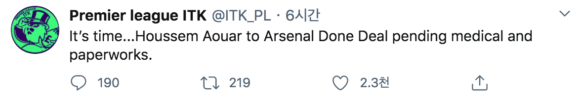 때가 왔다... 후셈 아우아르의 아스날 이적은 메디컬과 서류 작업만 남았다.