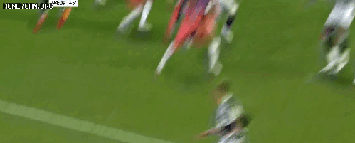 하베르츠의 팔에 닿은 장면 (팔에 맞았다, 겨드랑이에 맞았다로 뜨겁게 논란 중)